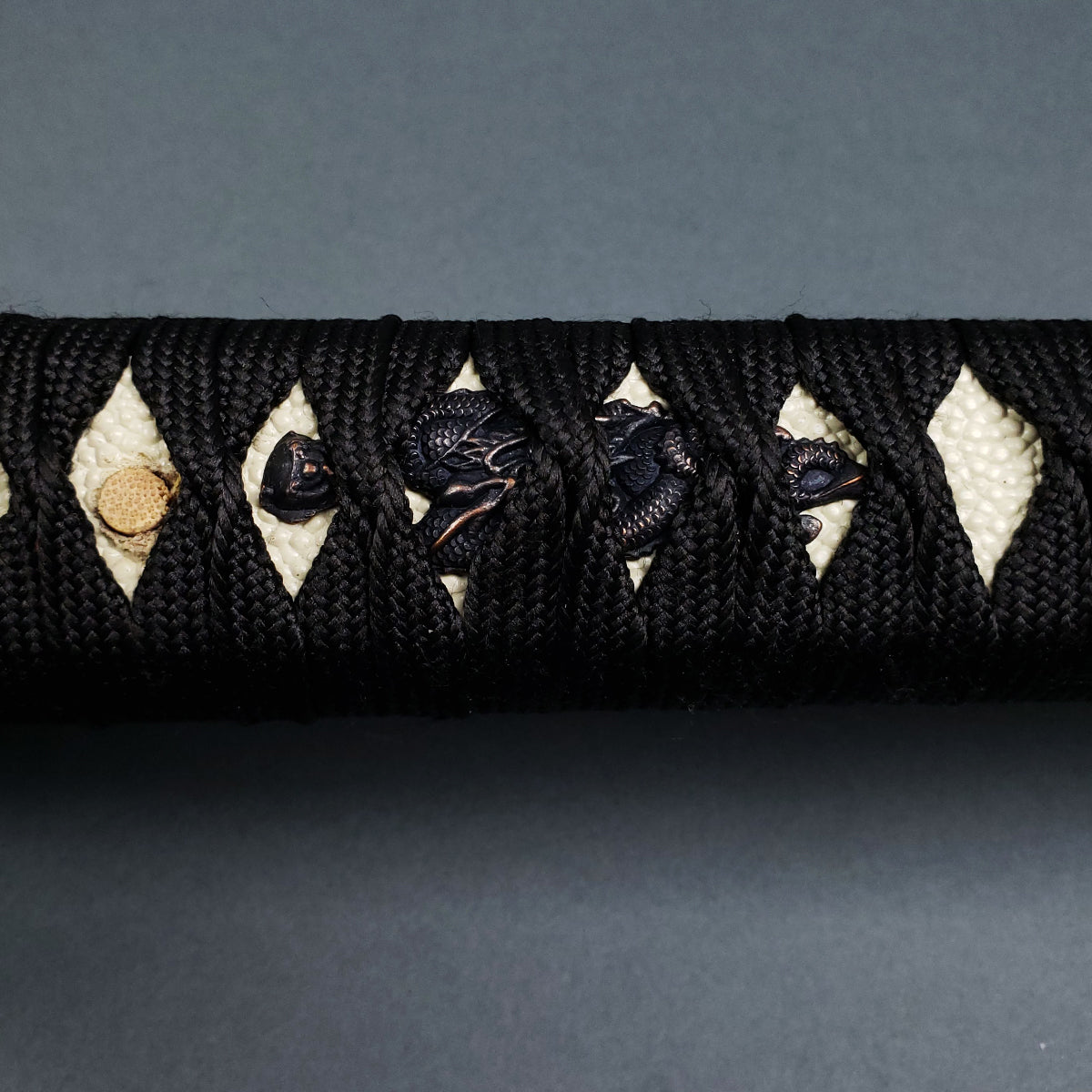 A unique feature is the integrated Bo-Hi on the blade. Bo-Hi is commonly known as blood grooves, but that is a common misconception. The purpose of the Bo-Hi is to help reduce the weight of the katana, it actually has nothing to do with channeling the blood. Making the Katana lighter enables the user to wield the katana better and puts less stress on the hands. Not to mention it benefits some advance cutting techniques that requires the katana to change direction rapidly.