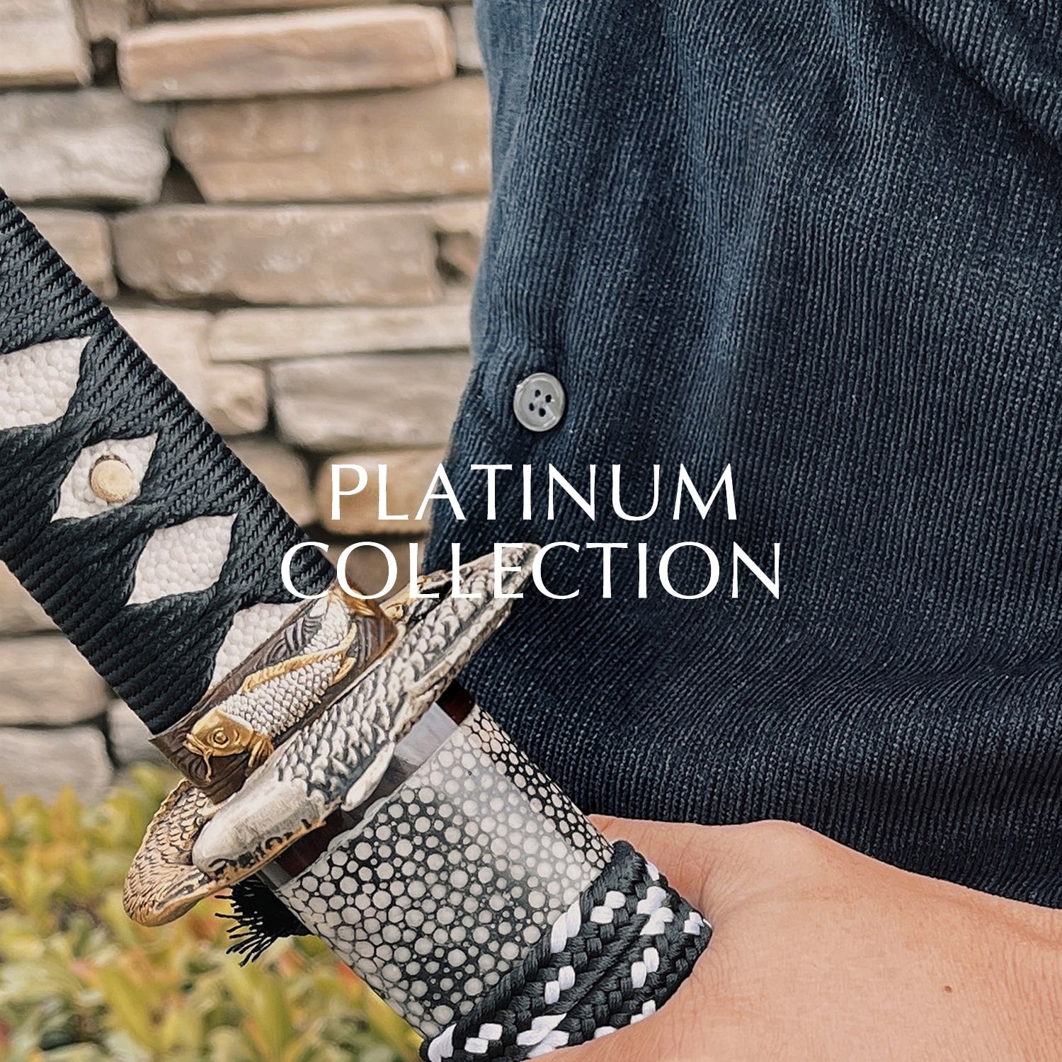 Our toughest swords in the Musashi® collection come from the Platinum Collection. These swords consist of either T10 steel or Tamahagane (the purest Japanese steel). T10 steel is a tungsten alloy steel that has an extremely high carbon content combined with a bit of silicon. This makes for an exceptionally hard blade that is impervious to scratches and abrasions. Tamahagane, literally translated means “jewel steel,” is one of the rarest materials used in katana forging. The forging process to create a sword using Tamahagane takes several months to years. Due to its difficulty each Tamahagane sword is as unique as the swordsmith that created it and truly one of the must-have swords in any collection.