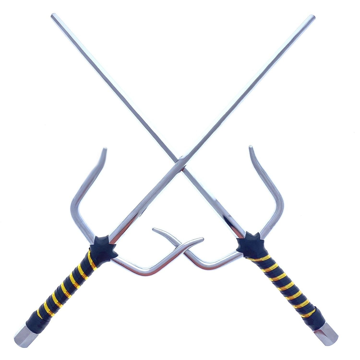 This 21" Chrome Sai features a sleek black gold plastic-wrapped handle for a secure and comfortable grip. Its durable chrome finish ensures long-lasting strength and a striking appearance, making it an excellent choice for both practice and display. Elevate your martial arts collection with this stylish and reliable sai.