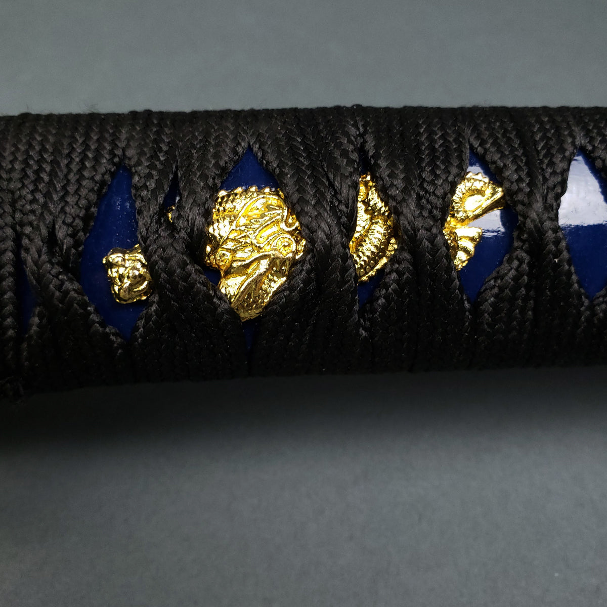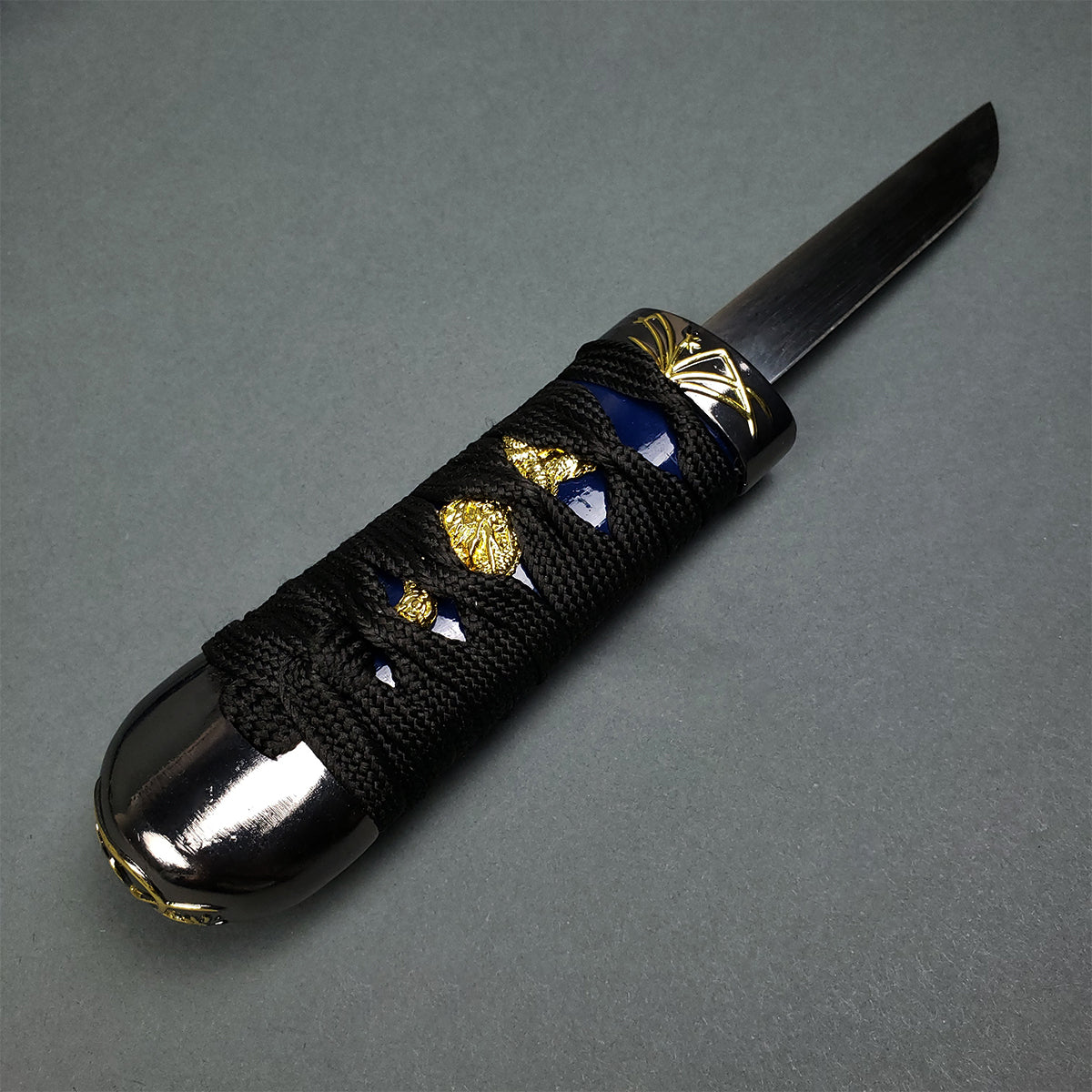 This katana features a small dagger at the end of the tsuka which matches the rest of the handle.