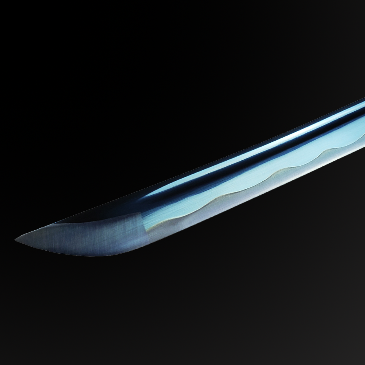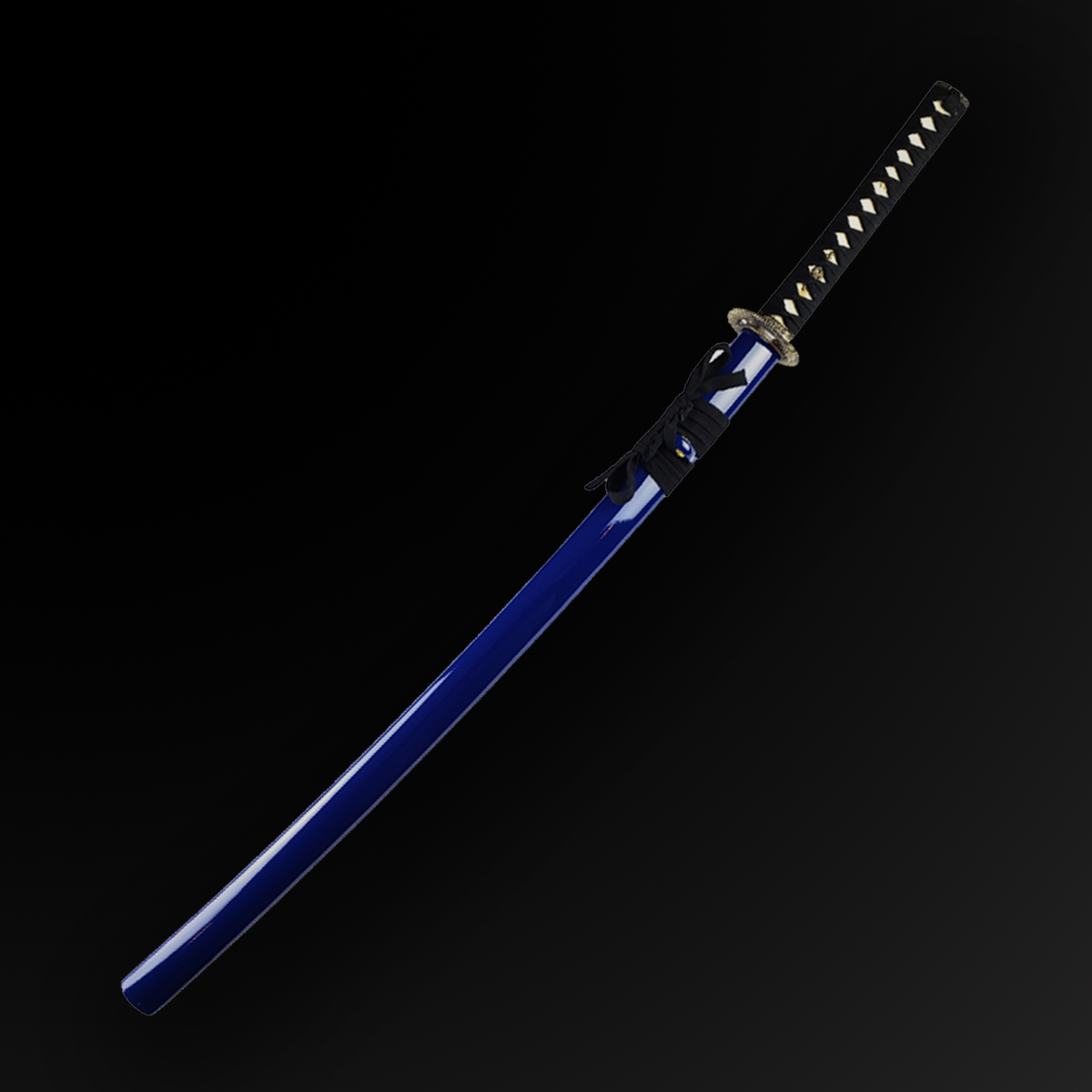 This beautiful blue blade features integrated Bo-Hi on the blade. Bo-Hi is commonly known as blood grooves, but that is a common misconception. The purpose of the Bo-Hi is to help reduce the weight of the katana, it actually has nothing to do with channeling the blood. Making the Katana lighter enables the user to wield the katana better and puts less stress on the hands. Not to mention it benefits some advance cutting techniques that requires the katana to change direction rapidly.